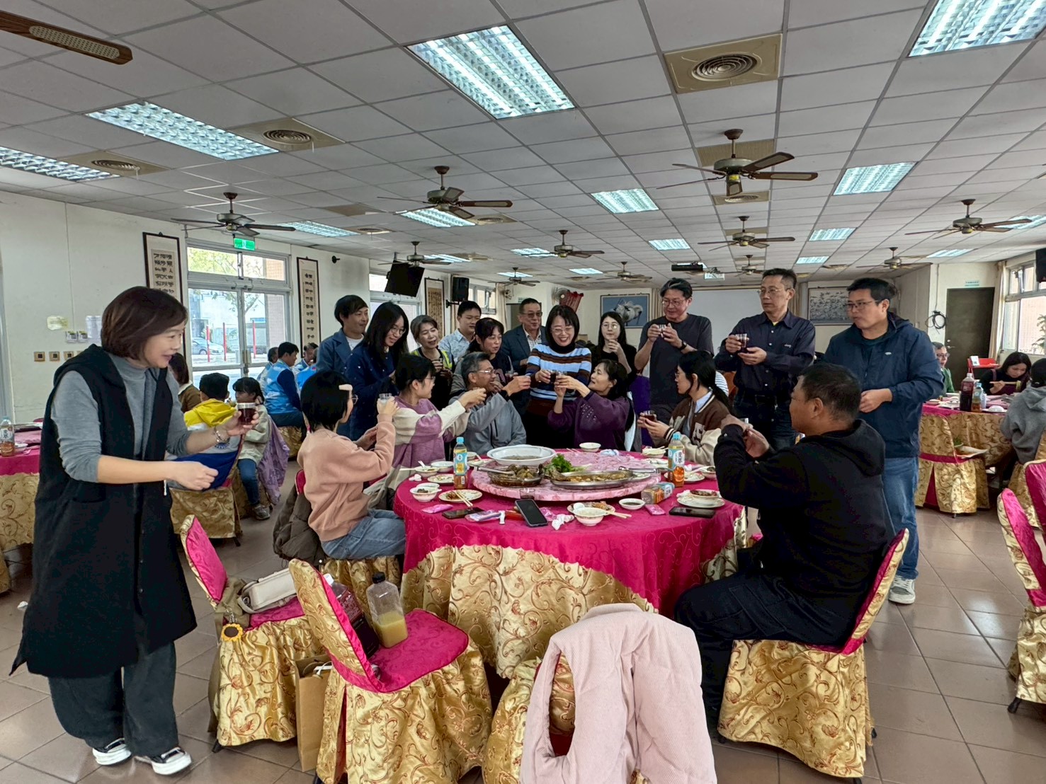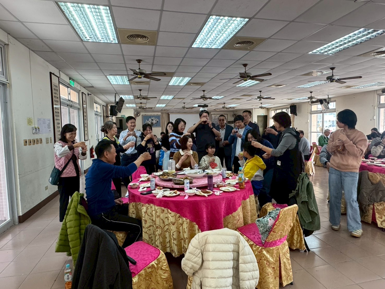 大家放下工作,一起吃飯、聊天、敘舊,笑聲比酒還多。