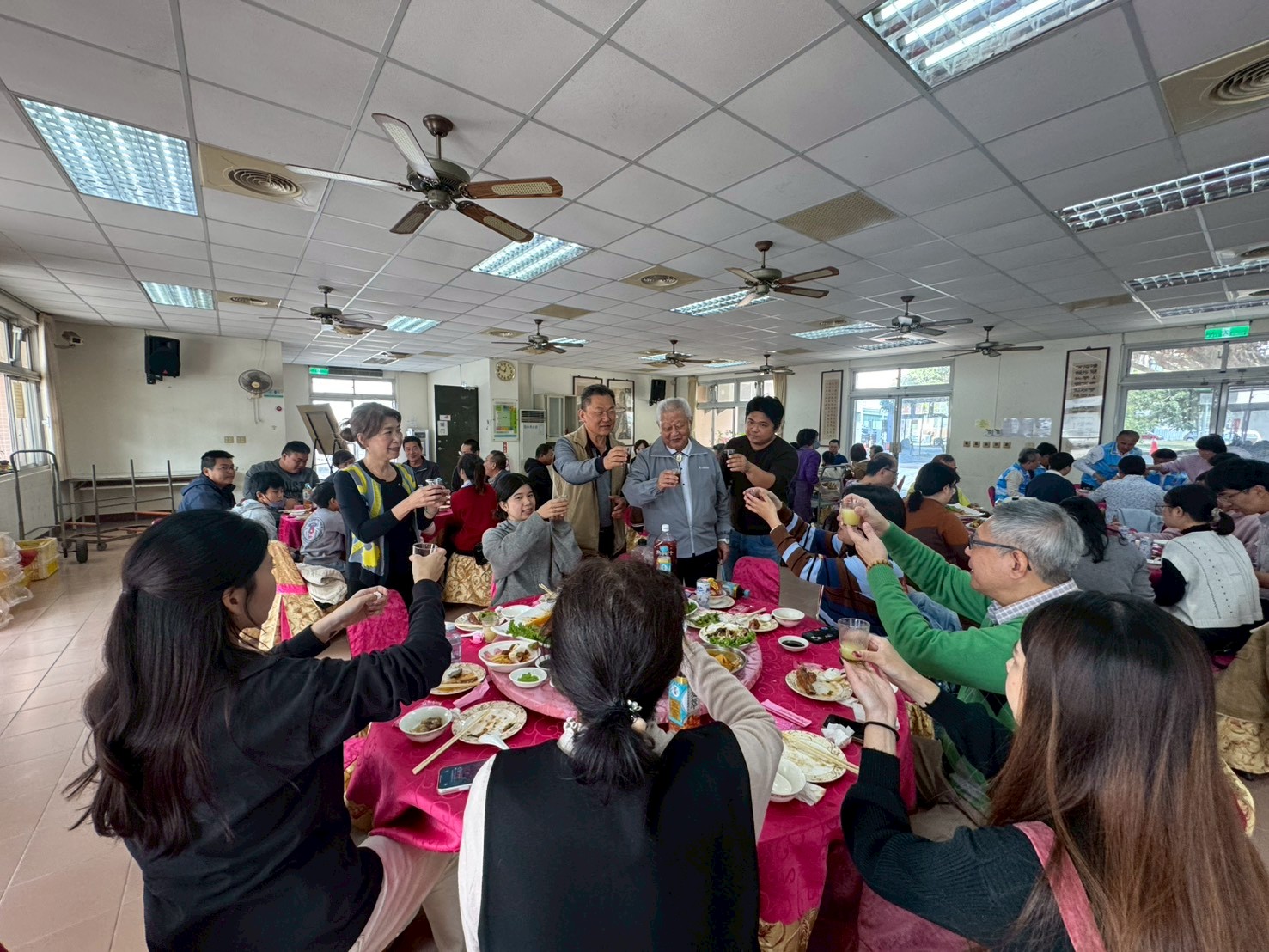 大家放下工作,一起吃飯、聊天、敘舊,笑聲比酒還多。